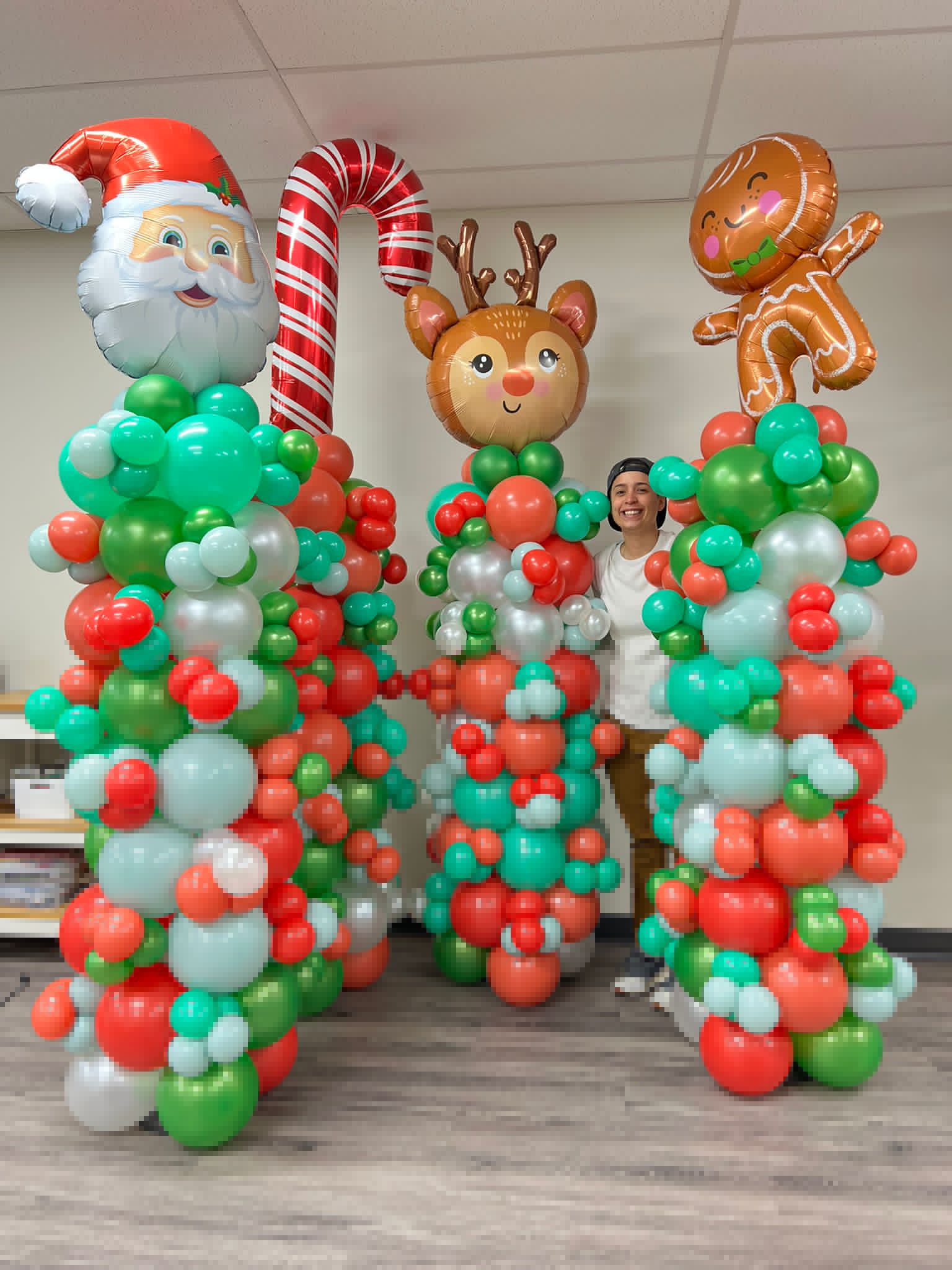 Christmas Character Balloon Column Foil Topper by Bold Bash Events in Chicago, Illinois.