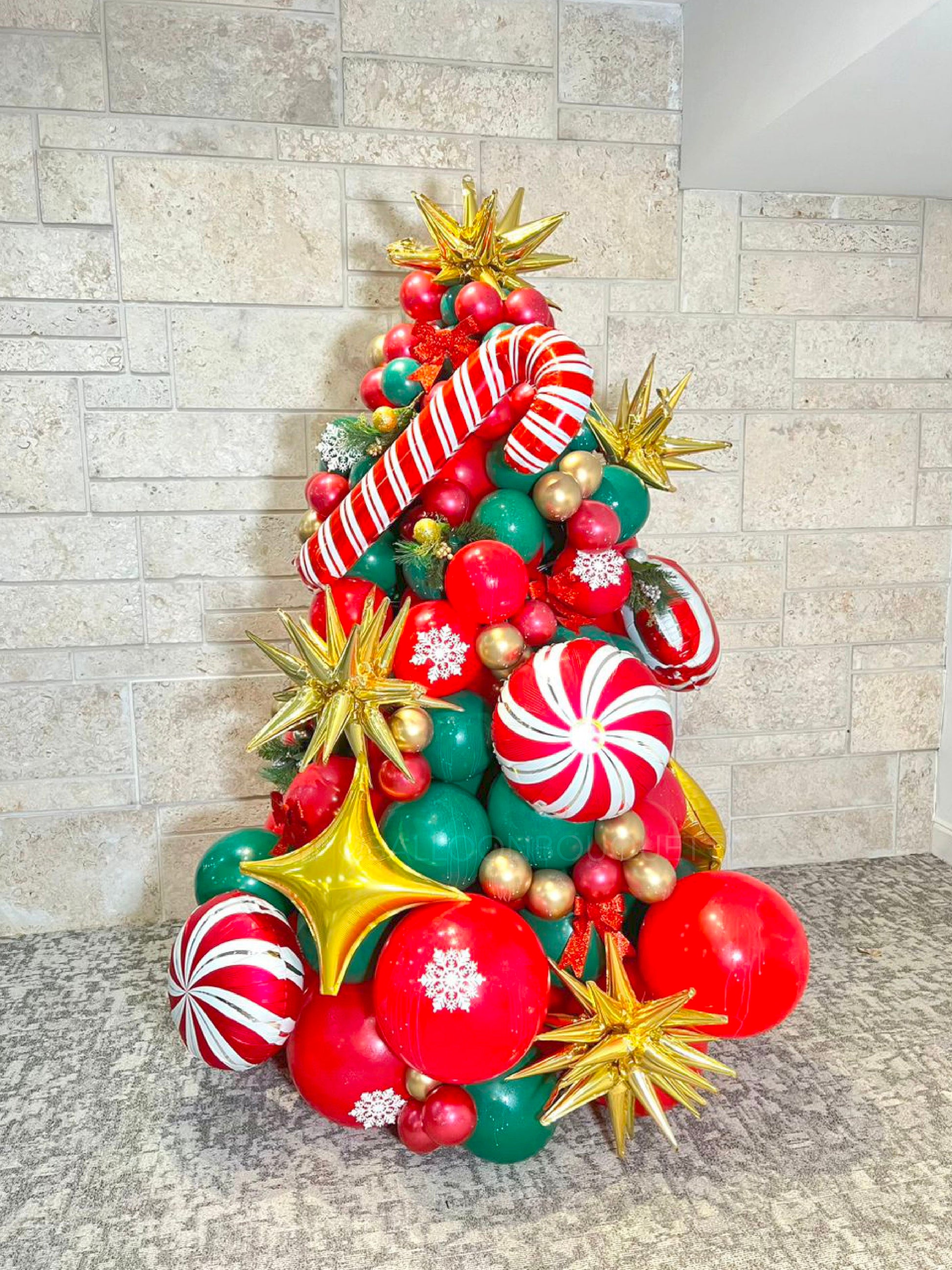 Elevate your holiday décor with this Marvelous Christmas Balloon Tree Column, artfully designed with an organic shape and shimmering foil balloons. Approximately 5' Tall. Perfect for adding festive elegance, its dynamic structure blends classic holiday charm with a modern twist, making it an impressive centerpiece for any event or space.